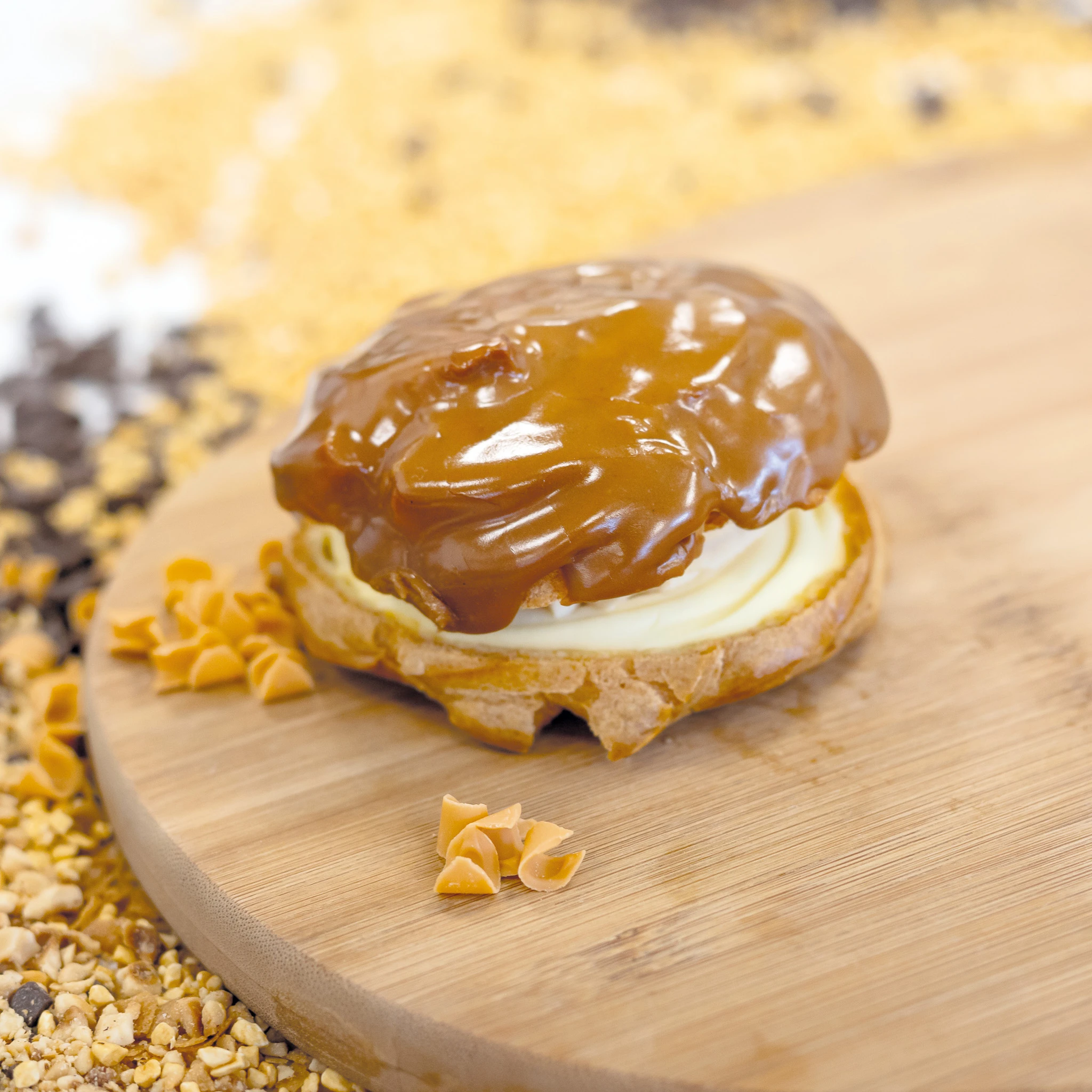 Karamelový větrník - Nadýchané odpalované těsto, které se rozpadá v ústech, s hedvábnou domácí šlehačkou a bohatým karamelovým krémem. Klobouček našeho nejprodávanějšího dezertu je chuť tekutého zlata – karamelová vrstva, která se rozplývá na jazyku.