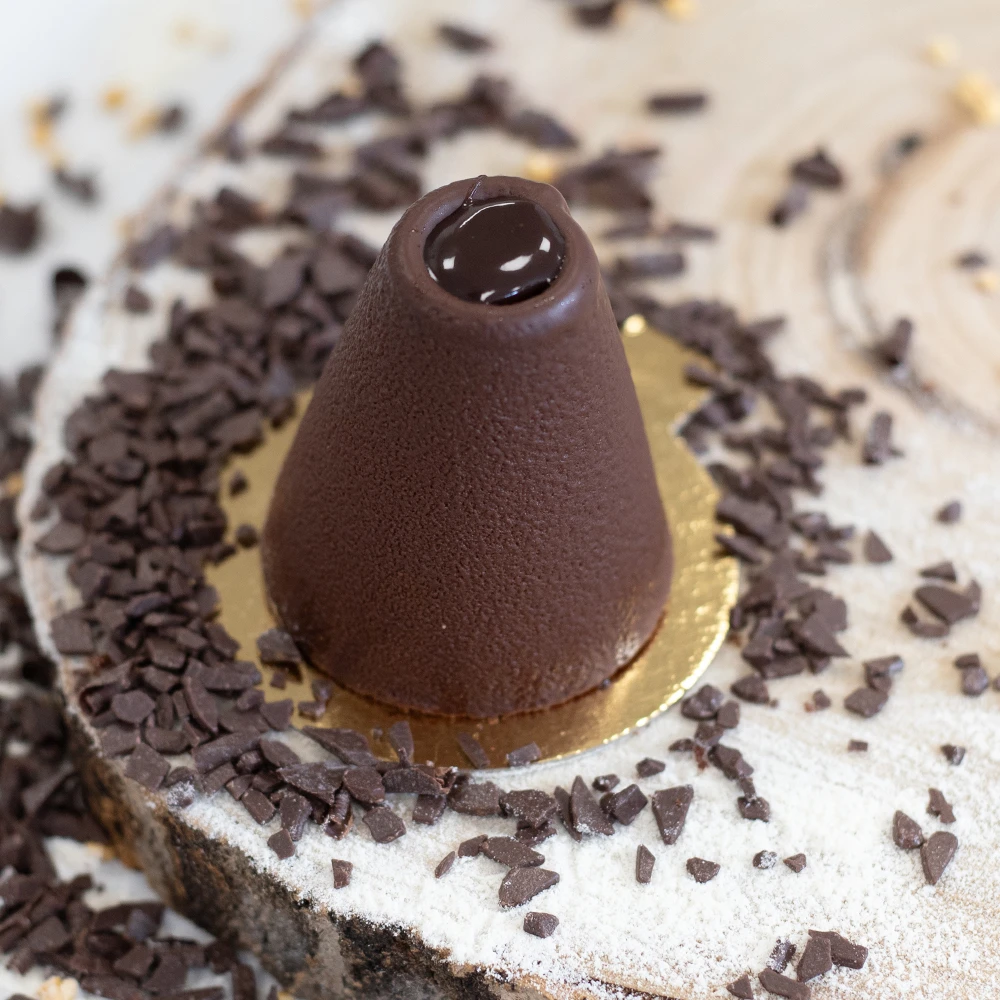 Likérová špička - hedvábně jemný mousse z prémiové tmavé čokolády. Sametová textura, která rozpouští a uvolňuje bohatou, krémovou chuť nejvyšší kvality. V srdci každého kousku se skrývá překvapivé tajemství – vynikající a pravý vaječný likér. Tento dokonalý kontrast mezi sladkou krémovostí tmavé čokolády a chutí vaječného likéru vytváří skvělou harmonii. Dokonalému vzhledu dodává čokoládový křupavý povlak.