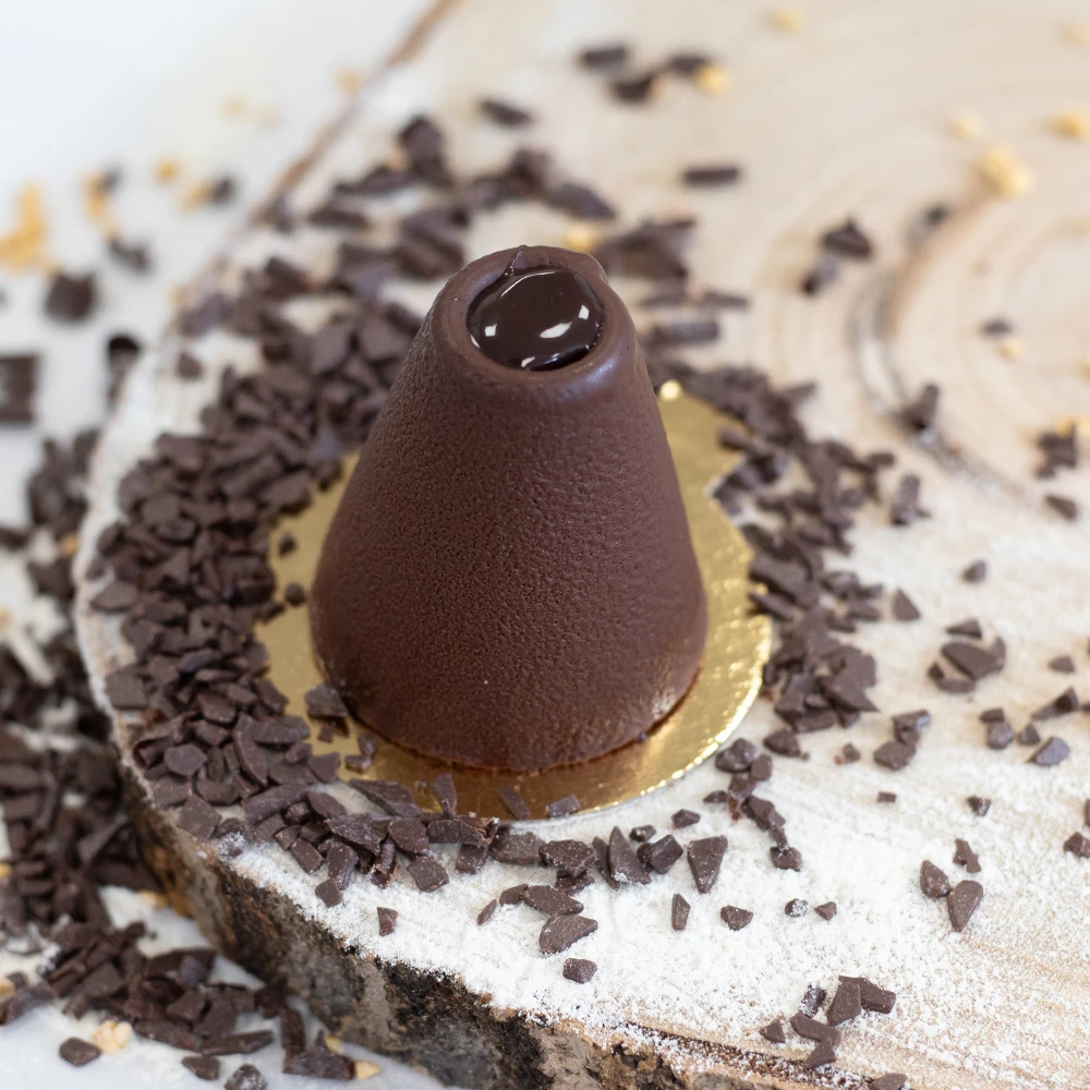 Mini Likérová špička - hedvábně jemný mousse z prémiové tmavé čokolády. Sametová textura, která rozpouští a uvolňuje bohatou, krémovou chuť nejvyšší kvality. V srdci každého kousku se skrývá překvapivé tajemství – vynikající a pravý vaječný likér. Tento dokonalý kontrast mezi sladkou krémovostí tmavé čokolády a chutí vaječného likéru vytváří skvělou harmonii. Dokonalému vzhledu dodává čokoládový křupavý povlak.