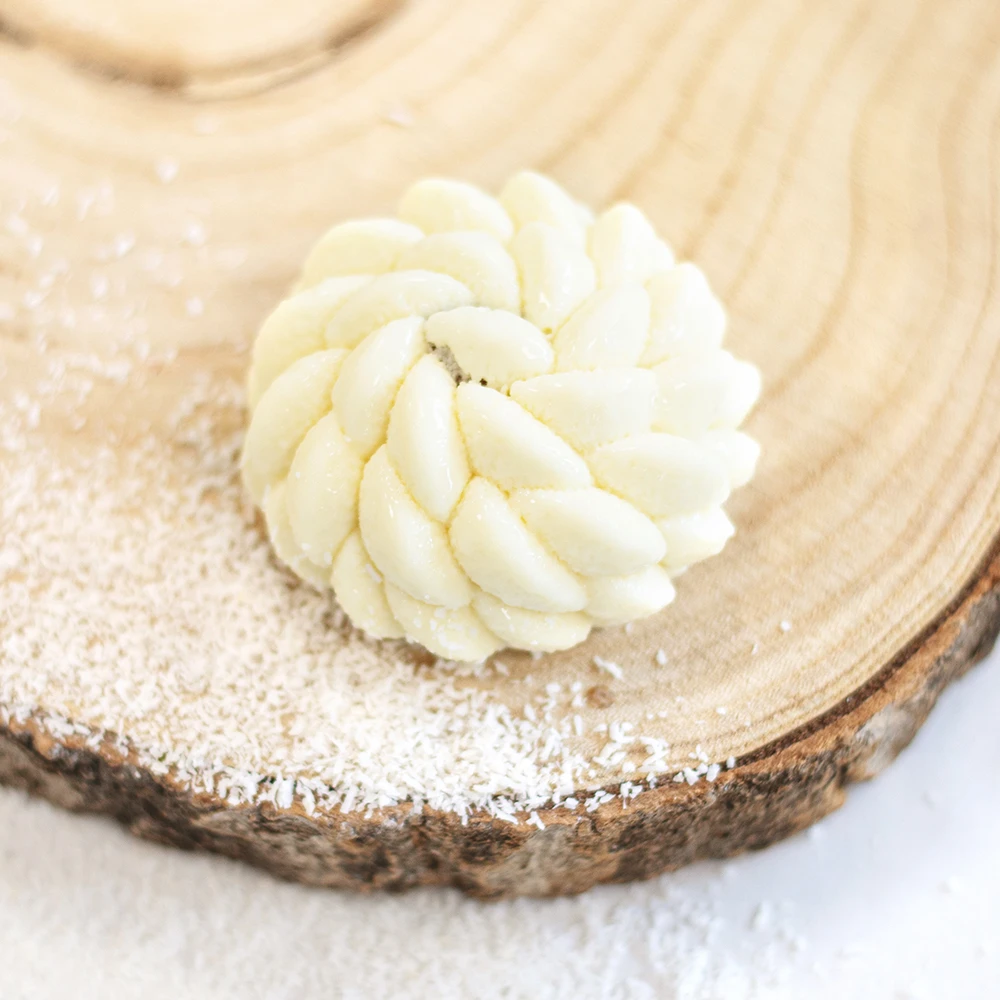 Piňa colada - hedvábně jemný kokosový mousse z prémiové bílé čokolády. Sametová textura, která rozpouští a uvolňuje bohatou, krémovou chuť nejvyšší kvality. V srdci každého kousku se skrývá překvapivé tajemství – intenzivní a svěžíananasové pyré. Tento dokonalý kontrast mezi sladkou krémovostí bílé čokolády s kokosem a chutí ananasu vytváří skvělou harmonii. Dokonalému vzhledu dodává křupavý povlak z bílé čokolády.