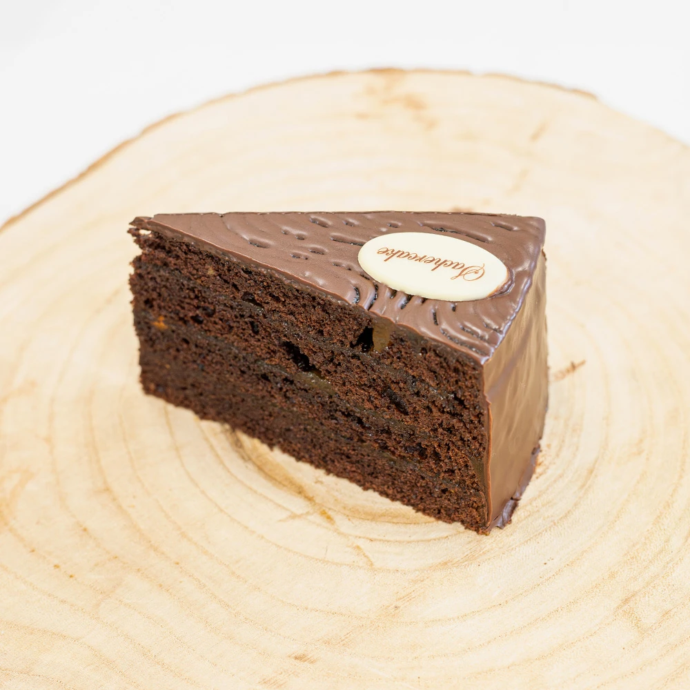 Náš Sacher dort kombinuje bohatý kakaový korpus s jemnou vůní rumu, který dokonale ladí s kyselkavou meruňkovou marmeládou. Celý zákusek je zalitý prémiovou horkou čokoládou a elegantně dozdoben čokoládovými dekoracemi.