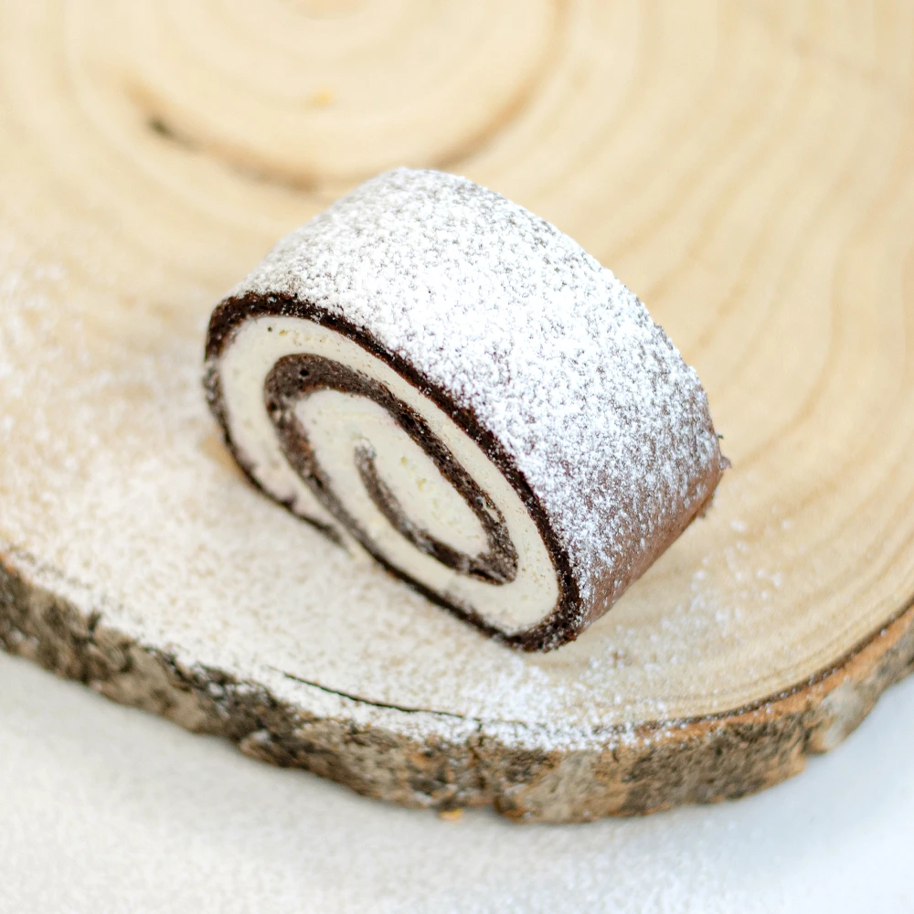 Višňová roláda – Nadýchaný čokoládový piškot s bohatým krémovým mascarpone krémem s jemnou šlehačkou (bez laktózy). Dokonalou chuť přináší višňové pyré, díky kterému si tento zákusek zamilujete. Jemný, osvěžující a smetanový.